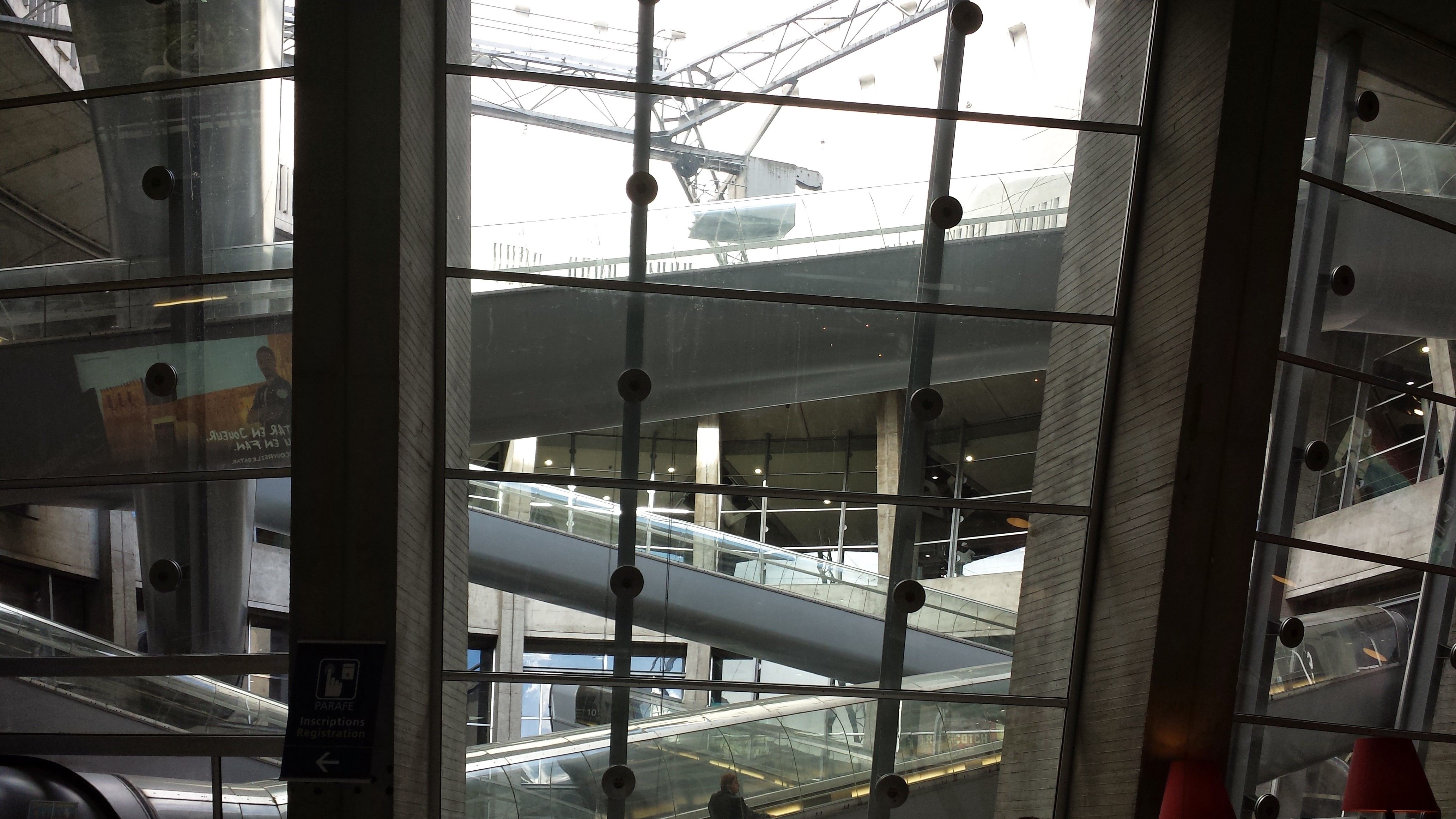 Saímos na sexta, dia 10 às 5am de casa, embarcamos às 6h25min e decolamos às 6h50min. Desembarcamos umas 9h e pouco (1h de diferença no fuso), fomos surpreendidos gradativamente ao chegar ao aeroporto Charles de Gaulle…sabíamos que o aeroporto era grande e tal, mas que organização incrível! Tudo é muito simples, o acesso ao transporte público é muito fácil e acessível, tudo que podia ser feito pra facilitar a vida de quem está viajando foi feito! Ao menos aos nossos olhos…rs Usamos uma esteira tãooo legal que passava no meio de um vão, que achei genial! Foto abaixo! Ao sairmos do Terminal 1, onde desembarcamos, o acesso aos outros terminais e à estação de trem foi muito fácil. Pegamos um trem até o centro de Paris, levou uma meia hora no máximo, daí já fizemos baldeação pro metrô e rumamos à acomodação que reservamos pelo airbnb. O apartamento ficava no bairro Porte de la Chapelle, ao norte da cidade, bem de frente à estação do metrô, uma maravilha! Super aconselho! Após pegarmos a chave e deixar as coisas lá dentro, pegamos o metrô e descemos na estação Concorde. Meio sem planejamento, livres, sem horários, andamos loucamente e tiramos bastante foto! O dia tava nublado, mas a temperatura estava ótima! Já de cara vimos tudo ao redor da praça da Concórdia, incluindo Louvre (por fora), Champs Elysees, Arco do Triunfo e até mesmo a Torre Eiffel! rs Falando assim parece que tudo está realmente do lado, mas tem que andar um bocado! Almoçamos uma baguete por ali msm, sentados no parque, e depois comemos um waffle com chocolate (digo, com nutella! Não sei q moda é essa que em todo lugar trocaram o chocolate por nutella…=( Sou a única no mundo que não é fã disso?! rs). Depois de andar km e km, passamos no mercado, compramos um vinho, cerveja, alguns salgadinhos e fomos pra “casa” descansar!